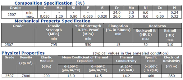 داپلکس 2507 از گروه “سوپر داپلکس” ها است که دارای استحکام بالا و مقاومت به خوردگی استثنایی است.